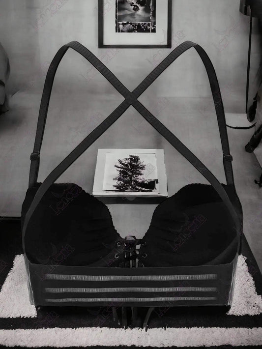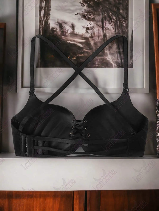 Black Cheriee lace up padded pushup plunge bra very sexy (c15)
